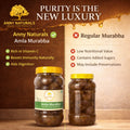 Anny Naturals follows strict organic farming and hygienic preparation standards to ensure premium quality in every jar. The murabba is carefully processed to maintain its nutritional value and authentic taste. Free from harmful chemicals and excessive preservatives, it offers a pure and wholesome experience. Each amla piece is soft, juicy, and infused with natural sweetness, creating a delightful texture and flavor.