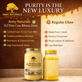 Anny Naturals ensures strict quality control at every stage of production. The milk is sourced from well-cared-for desi cows raised in natural environments. The ghee is prepared hygienically without artificial additives or preservatives. Each 1 liter jar is sealed securely to maintain freshness, aroma, and long shelf life. The premium glass packaging protects the product while offering convenient storage.